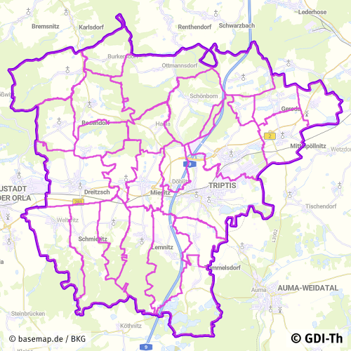 Der Datensatz enthält die Ortsteile der Verwaltungsgemeinschaft Triptis. Es handelt sich um einen Sekundärdatenbestand.