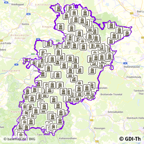 Der Datensatz zeigt die Umringe von Friedhöfen der Gemeinden des Landkreises Wartburgkreis. Es handelt sich um einen Sekundärdatenbestand.