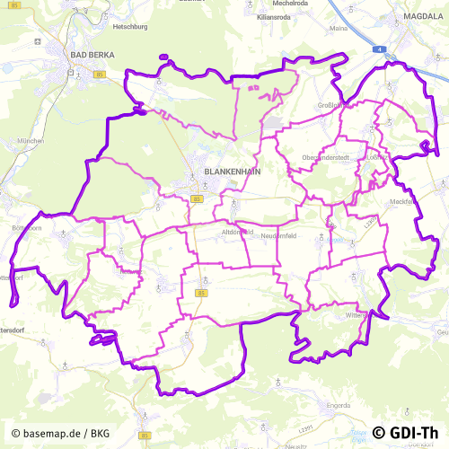 Der Datensatz enthält die Ortsteile der Stadt Blankenhain. Es handelt sich um einen Sekundärdatenbestand.