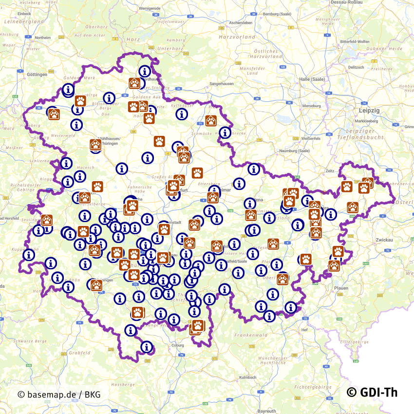 Darstellungsdienst (WMS) für die Standorte der Points of Interest (POI) in Thüringen. Der WMS enthält die Standorte der Zoos und Tierparks, Touristinformationen und Tierheime. Es handelt sich um einen Sekundärdatenbestand.